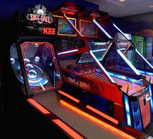 25+ arcade games working on a self-service card system. Offering prize games, skill games, and arcade games. Also offering a self-service redemption machine. Players earn tickets that are kept on the card that can be redeemed from the self-service redemption kiosk.